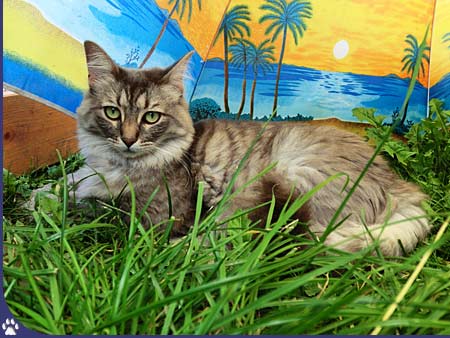 Unsere kleine Majestät. Ihren Namen bekam sie, weil sie anfangs ihren Napf am schnellsten leer hatte und danach auch noch die anderen beiden von ihren Näpfen verdrängt hat. Sie ist zumeist eher vorsichtig und damenhaft, überlegt bevor sie handelt. Doch manchmal geht's mit ihr durch, dann bringt sie Schoten bei denen wir uns biegen vor Lachen. Queenchen kann recht schreckhaft und schnell beleidigt sein und sie merkt sich das dann auch noch recht lange. |